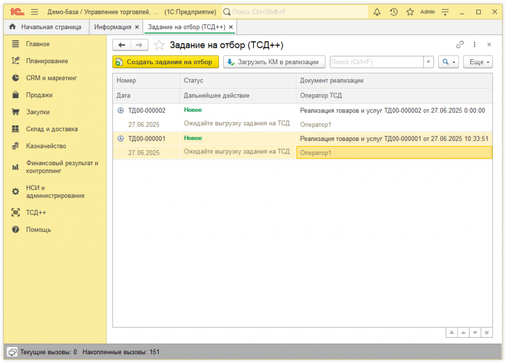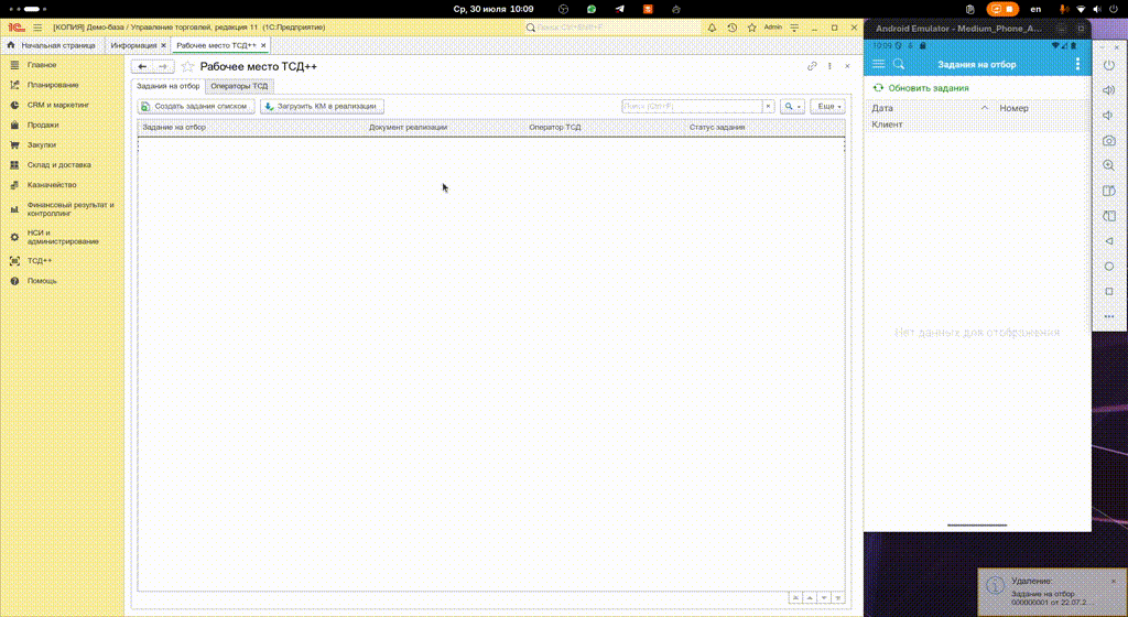 - Обмен с ТСД осуществляется через HTTP-сервис